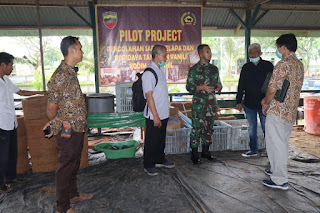 Kedatangan Rombongan ini di sambut baik oleh Dandim 0314/Inhil dan langsung meninjau lokasi pilot projek pengolahan Sabut kelapa.