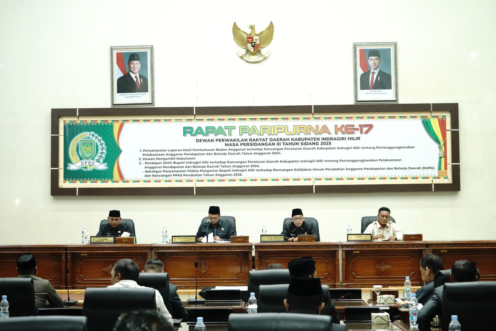 Rapat paripurna ini mengagendakan pengesahan Ranperda Pertanggungjawaban Pelaksanaan APBD Tahun Anggaran 2024 dan penyampaian pidato pengantar terhadap Rancangan KUPA dan PPAS Perubahan APBD Tahun Anggaran 2025 oleh Bupati Indragiri Hilir, H. Herman.